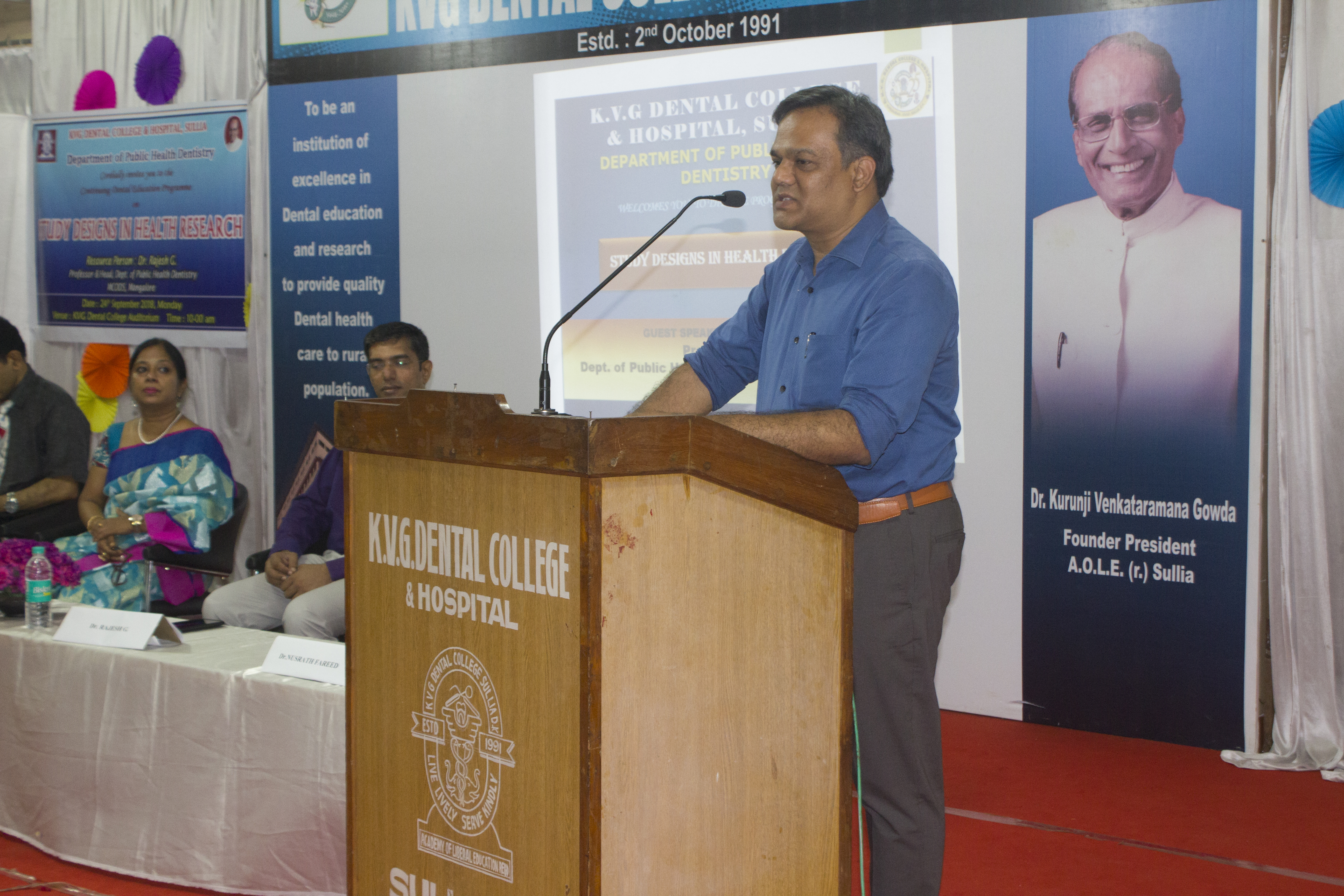 A worshop on ‘Epidemiology and Health research methodolgy ’was conducted on 24-09-2018 to 28-09-2018 and Dr. Rajesh G, Professor and Head, Department of Public Health Dentistry , MCODS, Mangalore was the guest speaker.