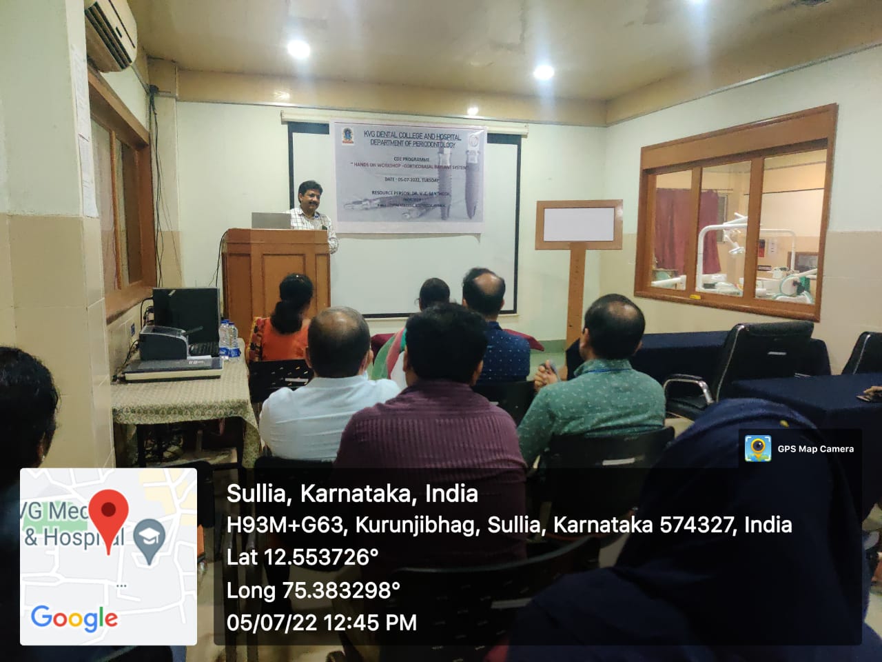 KVG Dental College and Hospital ,Sullia conducted CDE programme on 5th July ,2022 organised by the dept of Periodontology & Implantology