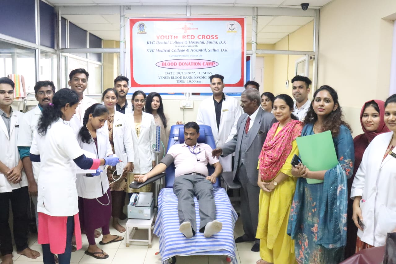 Blood donation camp conducted by Youth Red Cross KVG Dental College & Hospital, Sullia in asscociatin with KVG Medical College & Hospital, Sullia on 18.10.2022. Venue : Blood Bank , Kvg Medical College, Sullia>