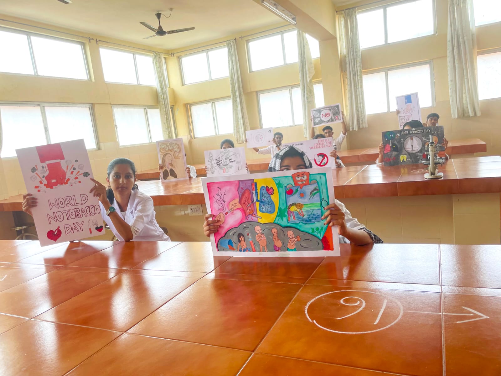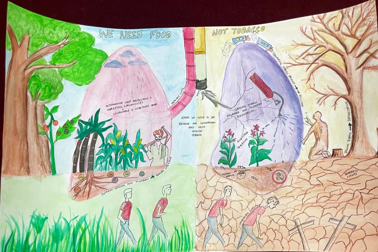 drawing competition was conducted among staffs, pgs and ugs on the theme " we need food, not Tobacco"