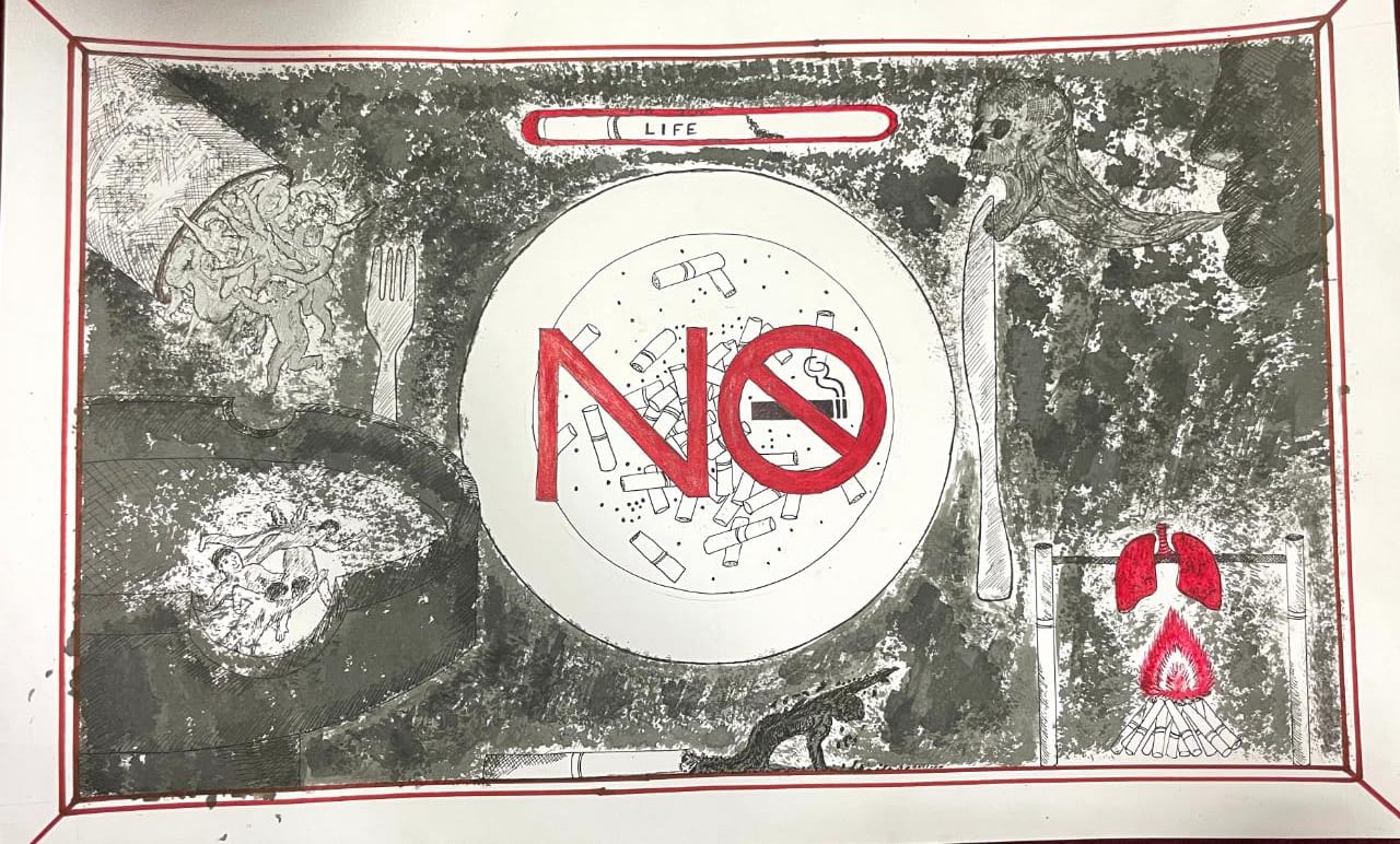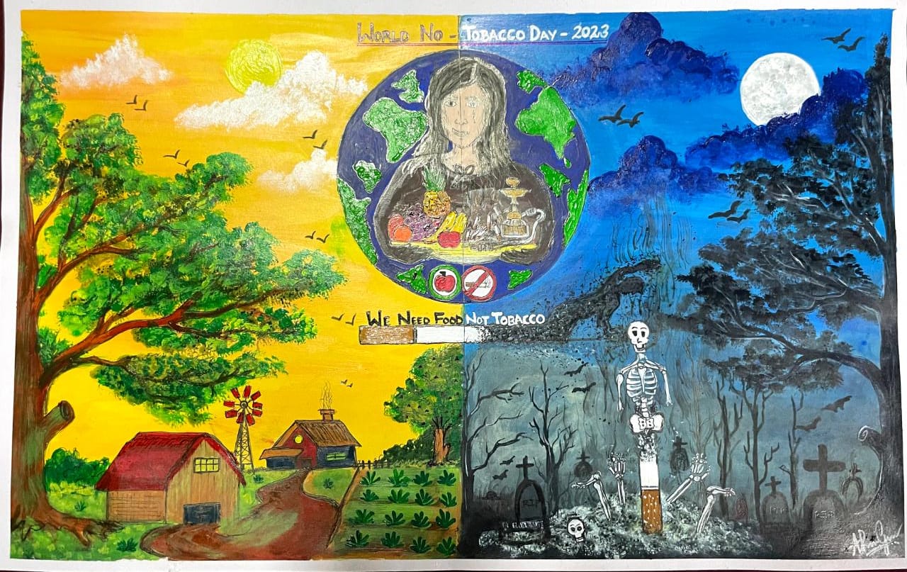 A drawing competition was conducted among staffs, pgs and ugs on the theme " we need food, not Tobacco" as a part of Anti Tobacco day on 31st May 2023.