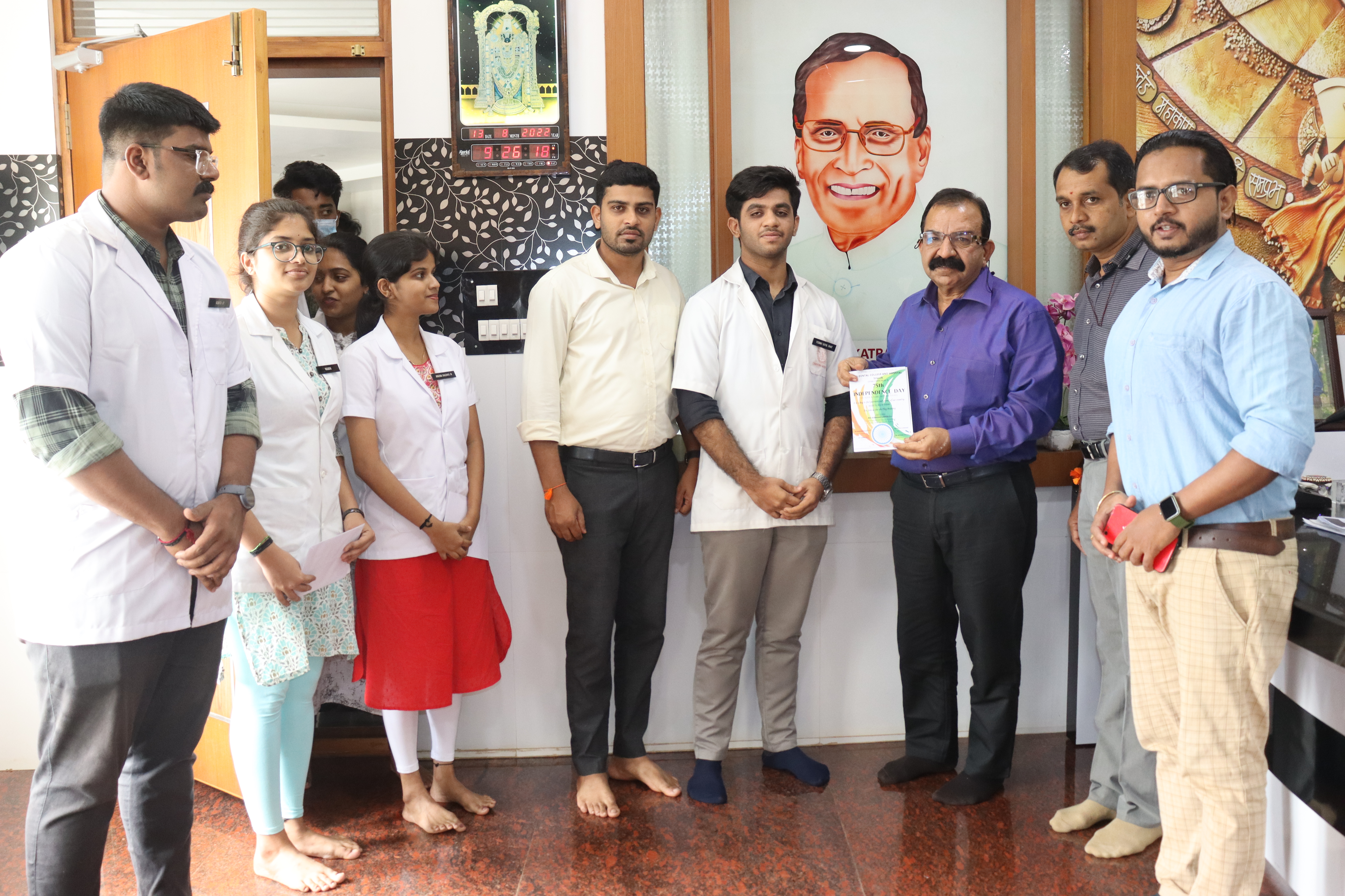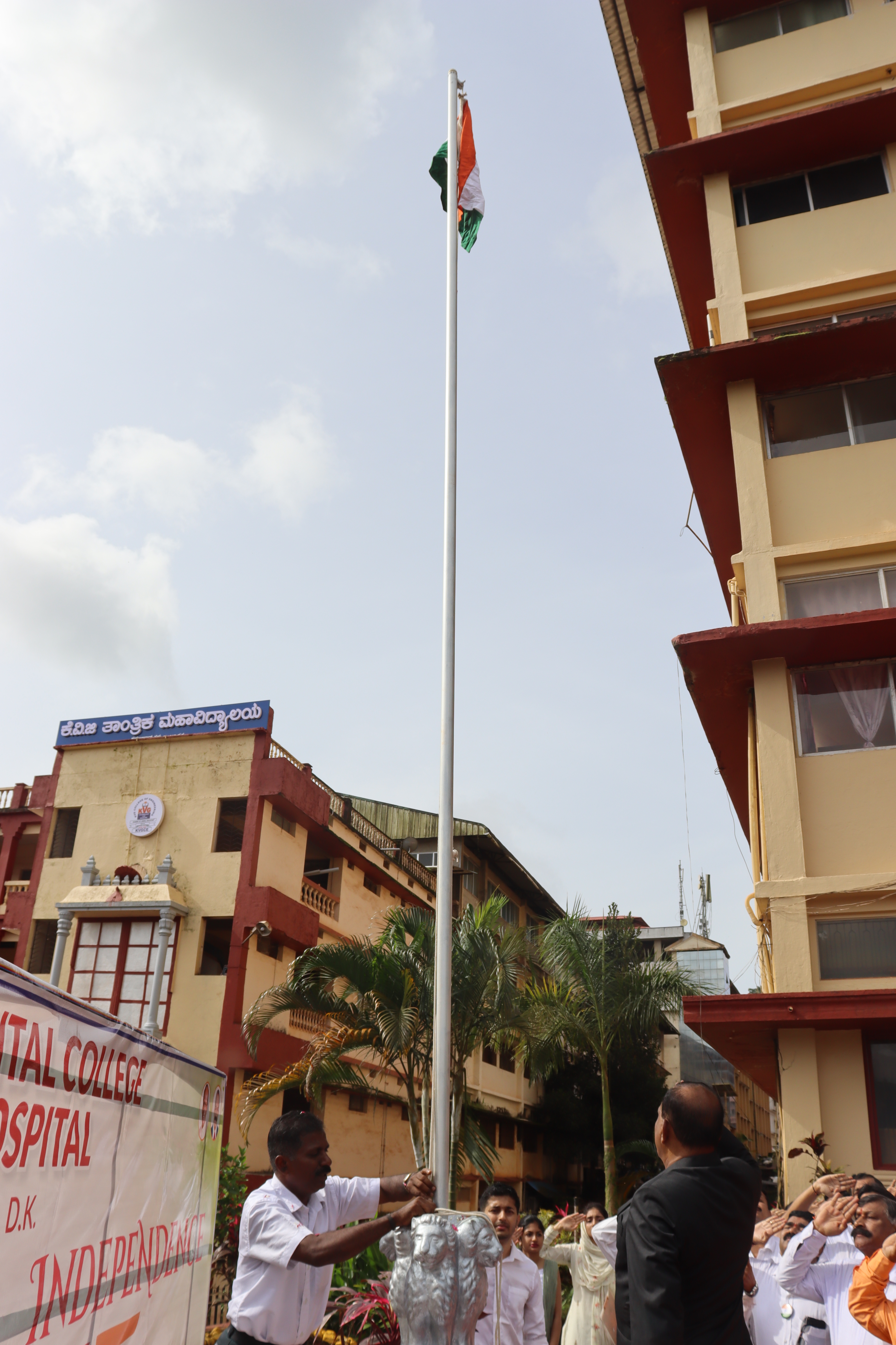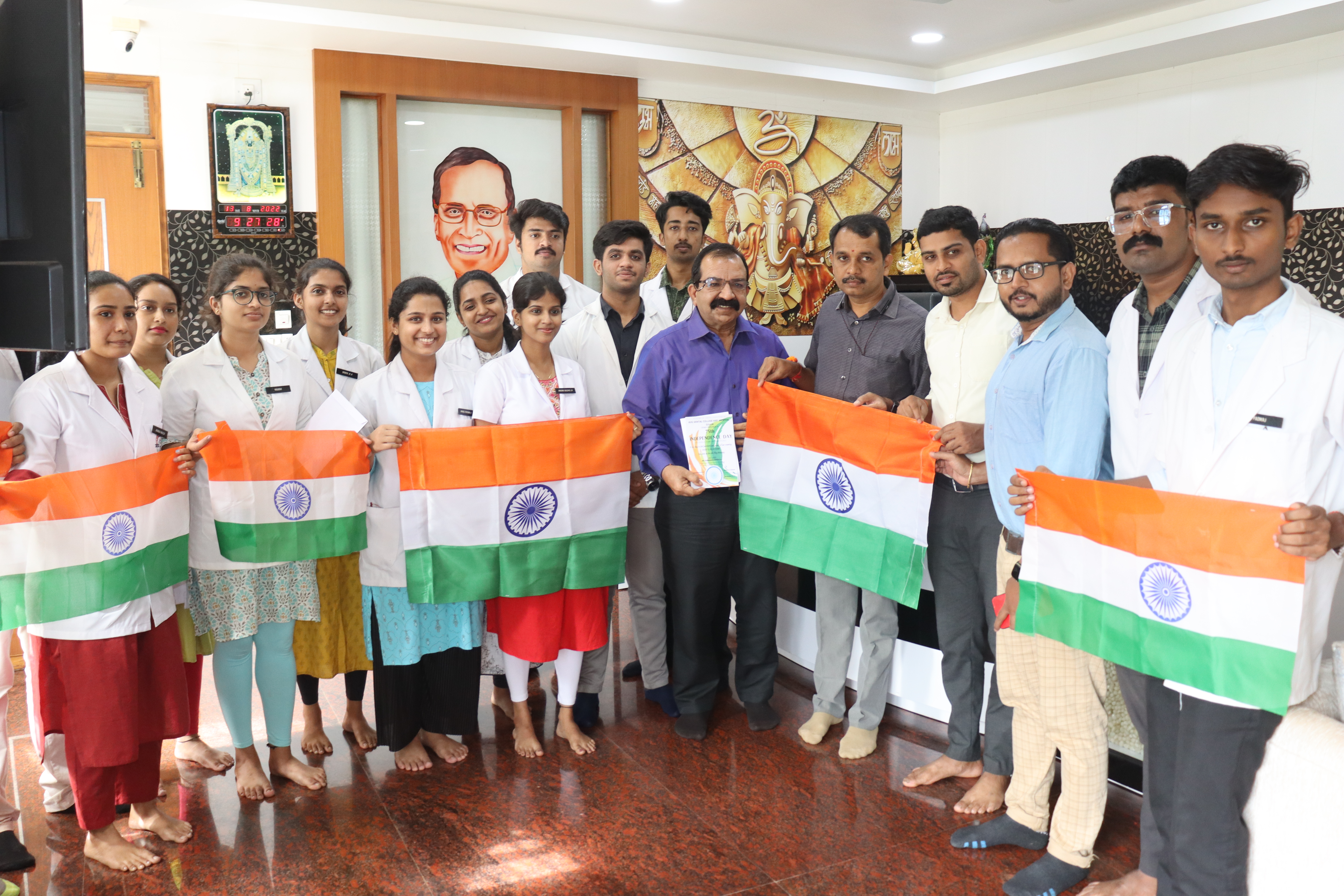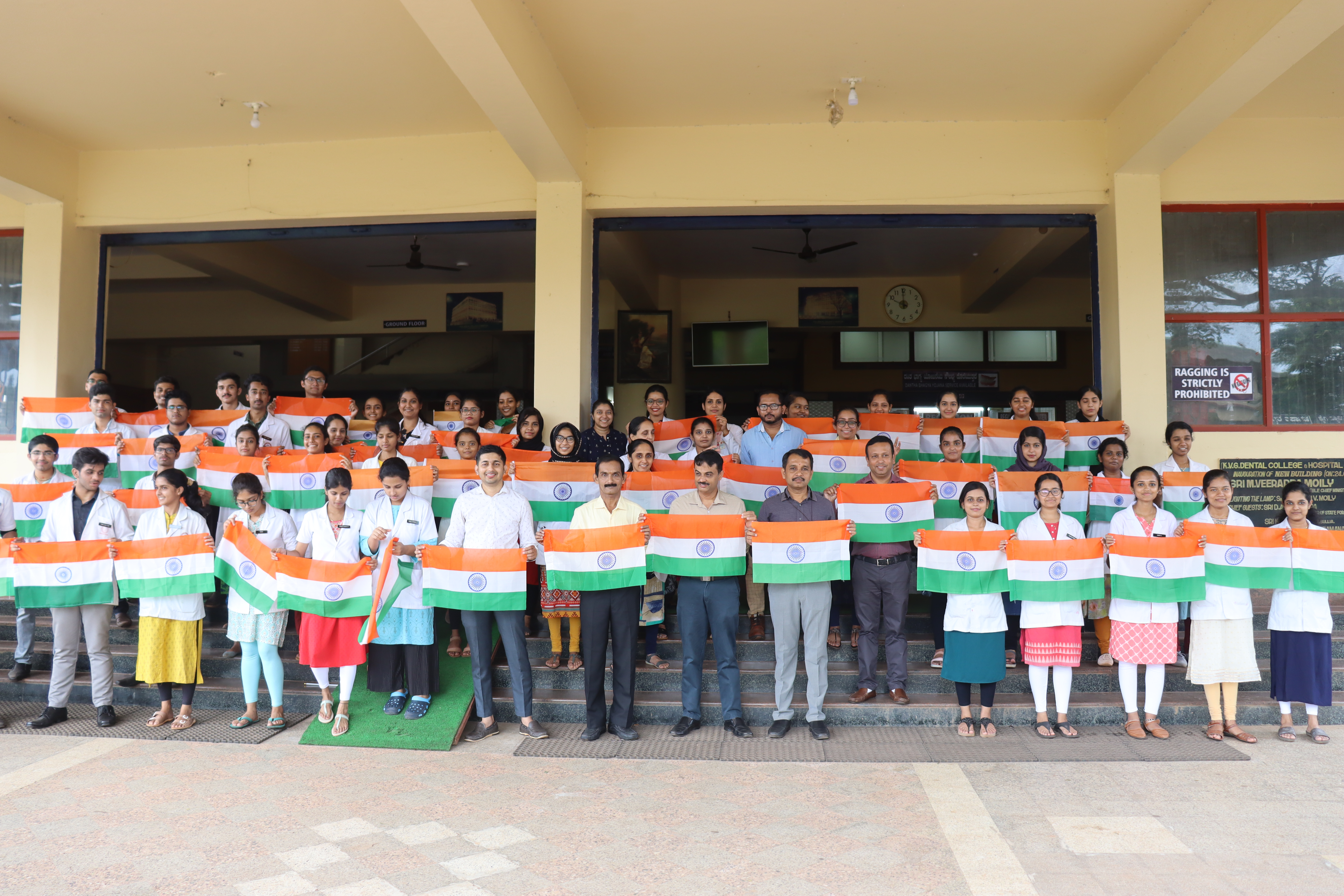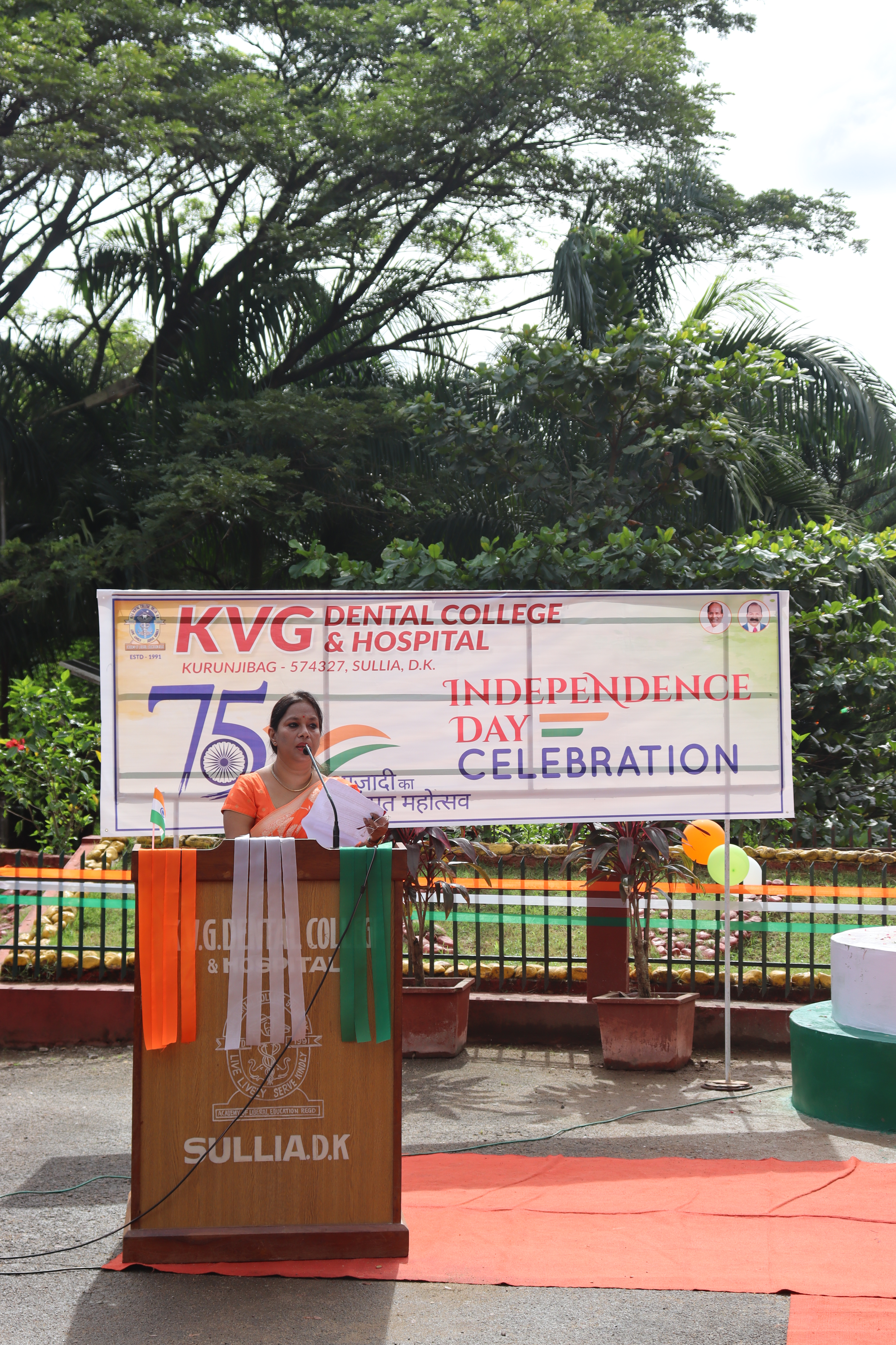 75 th independence day was celebrated in KVG Dental college & Hospital on August 15, 2022.Mr Ramadas Gowda superintendent of police/commandent Retd.[selection grade] hoisted the flag and gave inspiring speech.
