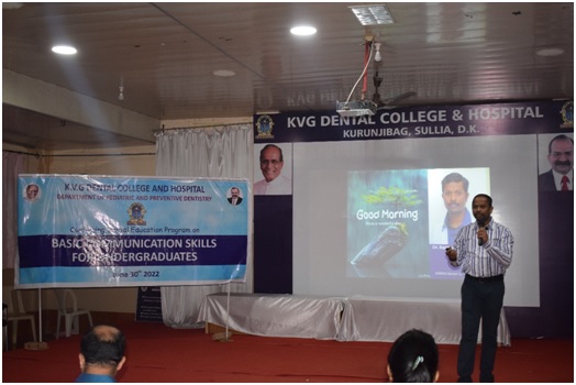 CDE program was conducted by the Department of Pediatric and Preventive dentistry, KVG Dental college and hospital on 30/07/2022. Dr. Ramasubba Reddy Challa, Professor and Head &IQAC Director, HSRSM Dental College & Hospital spoke about basic communication skills.