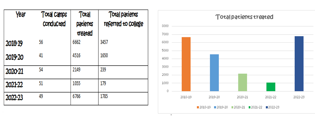 These programs aim at dental treatment and creating oral health awareness. Thousands of patients benefit from these camps and a considerable number of these beneficiaries continue treatment in the Institution as follow up patients. The Institution has taken a great initiative in providing free transport facility and free dental treatment for follow up patients which bridges the biggest challenge faced in remote rural area.